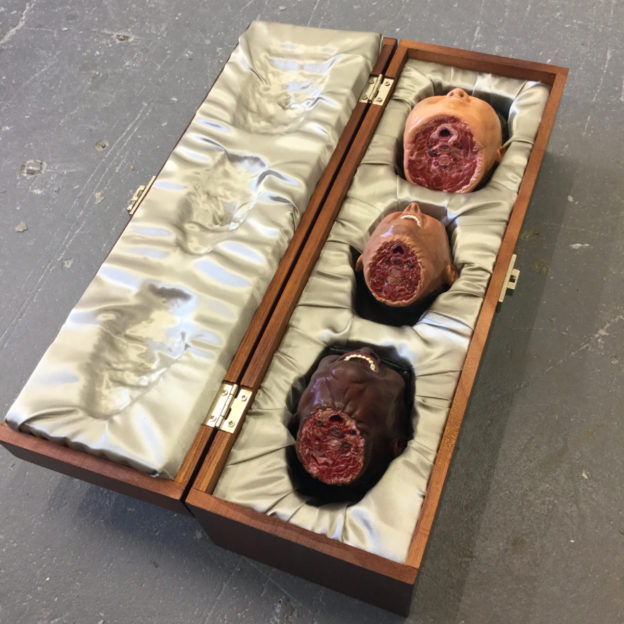 The inscriptions of time on the body. A tally stick of experiences. I felt the bare wood of this 2011 piece would benefit from the experiments and discoveries made while painting the Last Laugh heads.